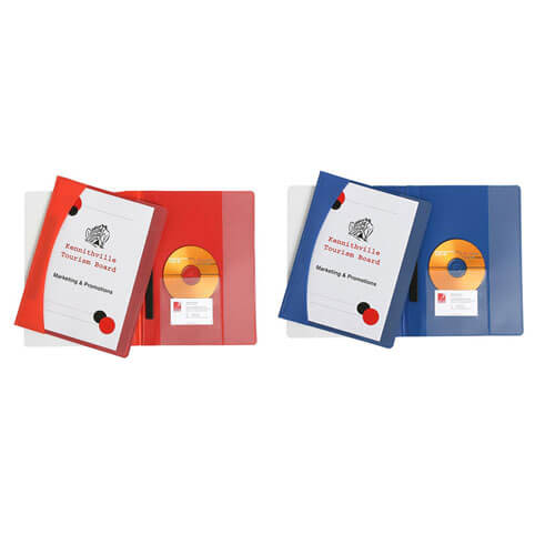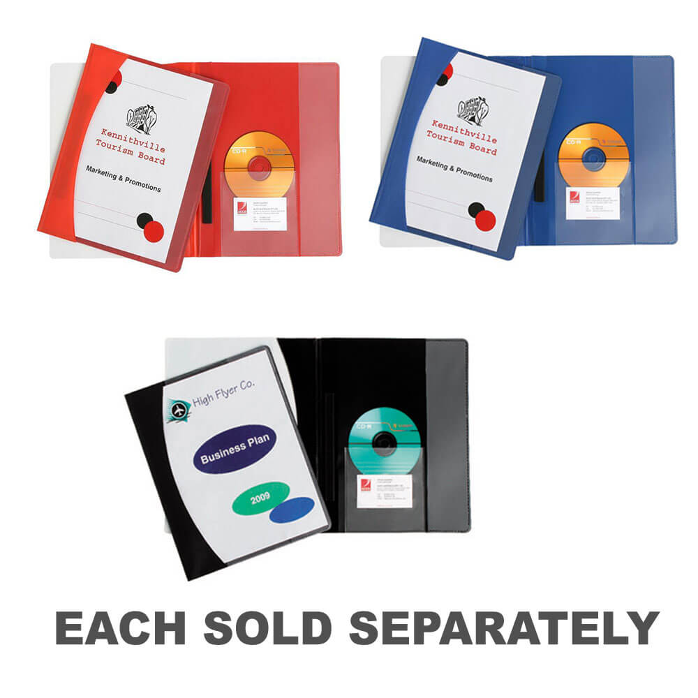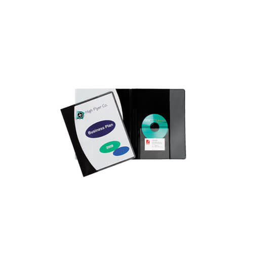 - Semi rigid with a clear front cover. Inside back cover with vertical pocket, CD holder and business card holder.