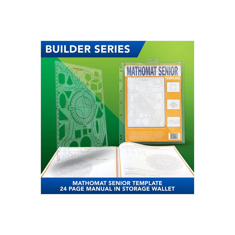 Mathomat Senior has been specifically developed for sketching and presentation of senior school work. Mathomat Senior includes a central protractor that is also the unit circle for the study of trigonometry. A tangent line that can be used with the unit circle. Graphing curves for sine, cosine, tan, quadratic, cubic, parabolic, hyperbola, and normal frequency distribution curves. Mathomat Senior includes shapes for and sketching outlines for 3D solids used in area and volume calculation.