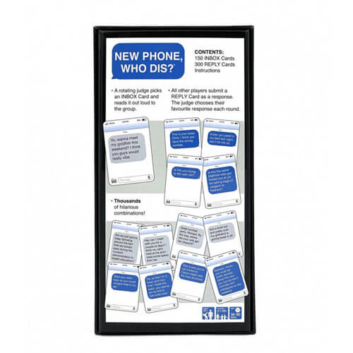 Players rotate drawing a sent (or "inbox") card while the rest of the group competes to play the funniest reply card. Once everyone in the group has played their chosen reply card, the judge decides which combo is the funniest. That person gets a point. At the end of the game, the player with the most points wins!