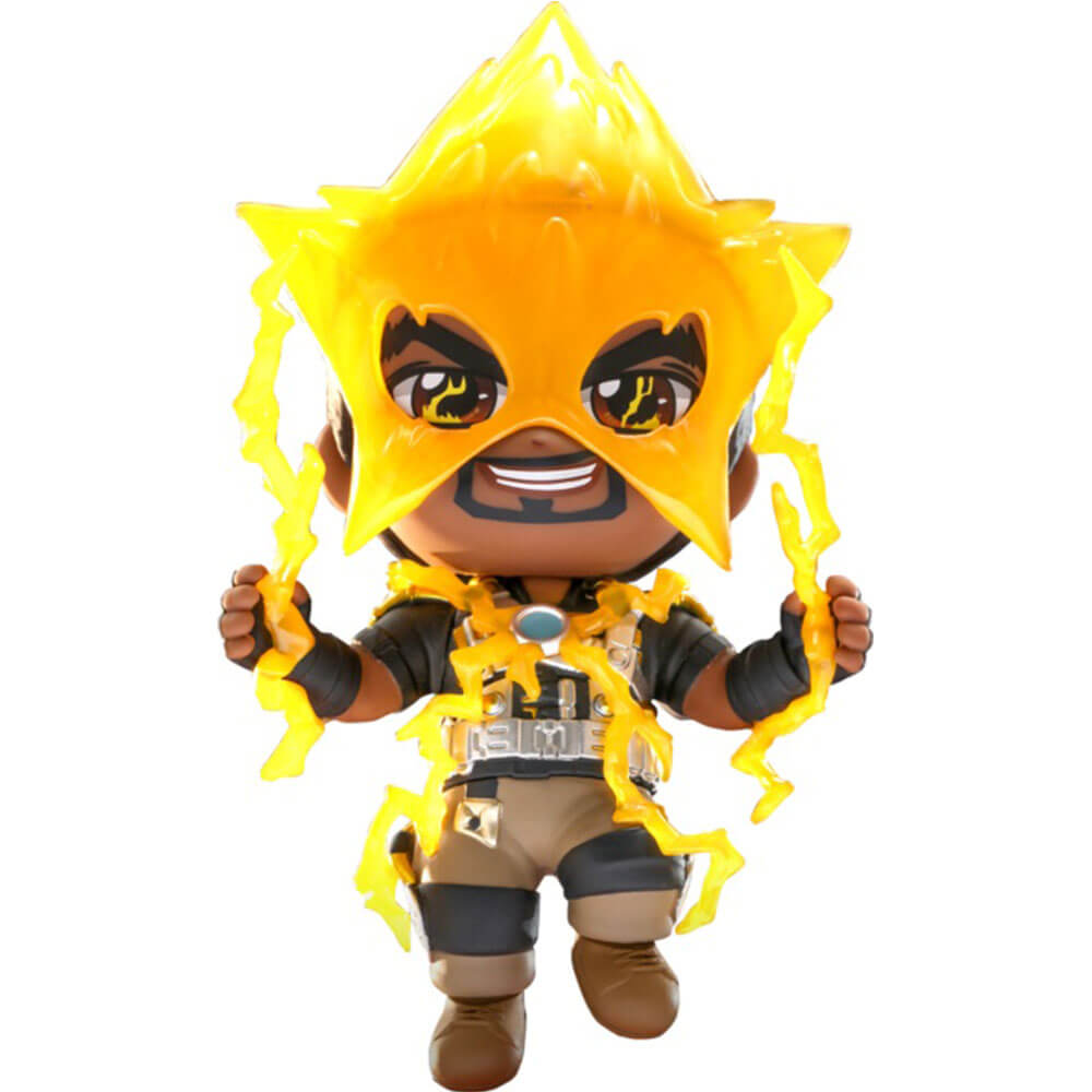 • The Electro Cosbaby (S) Hot Toys Figure features Electro as he appeared in Spider-Man: No Way Home, stylised with Hot Toys' popular Cosbaby Proportions! Standing at approximately 10.5cm, the bobblehead figure rises above his display base, surrounded by electrical energy effects pieces as he charges up and prepares to strike down his opponents